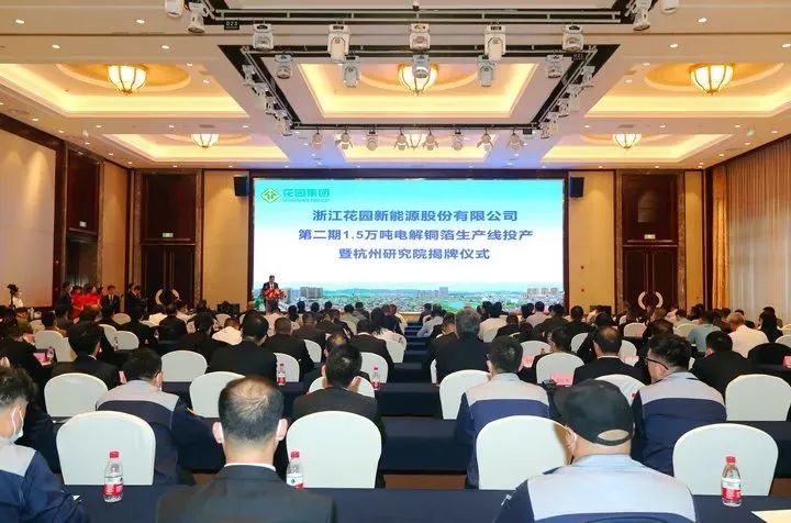 【項目建設】花園新能源公司舉行第二期1.5萬噸電解銅箔生產(chǎn)線投產(chǎn)暨杭州研究院揭牌儀式